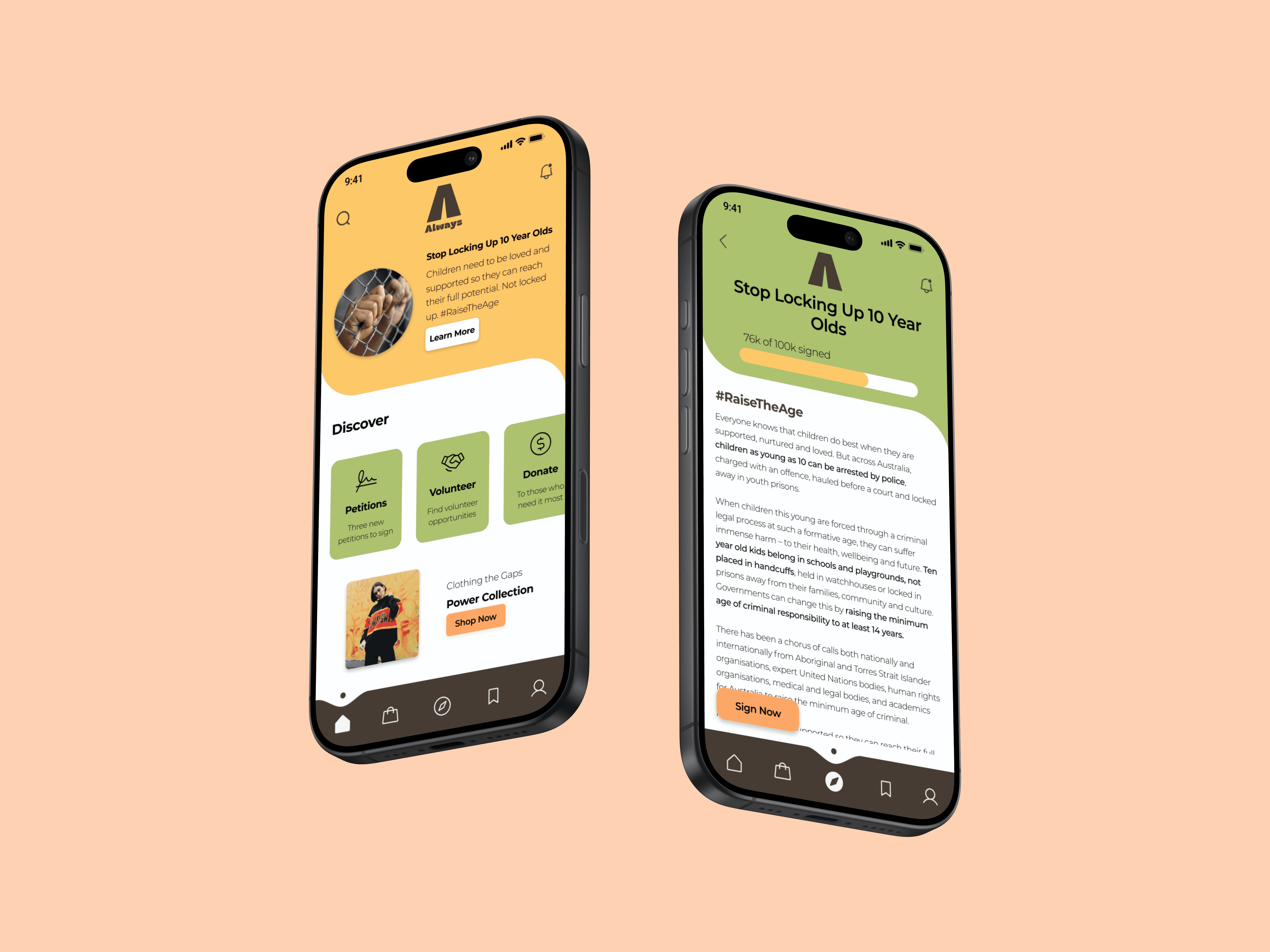 I organized the app around how people engage (Discover, Support, Act) rather than content type. Users can find content by format (videos, podcasts, articles), purchase from verified Indigenous businesses, or take action through petitions and volunteering.