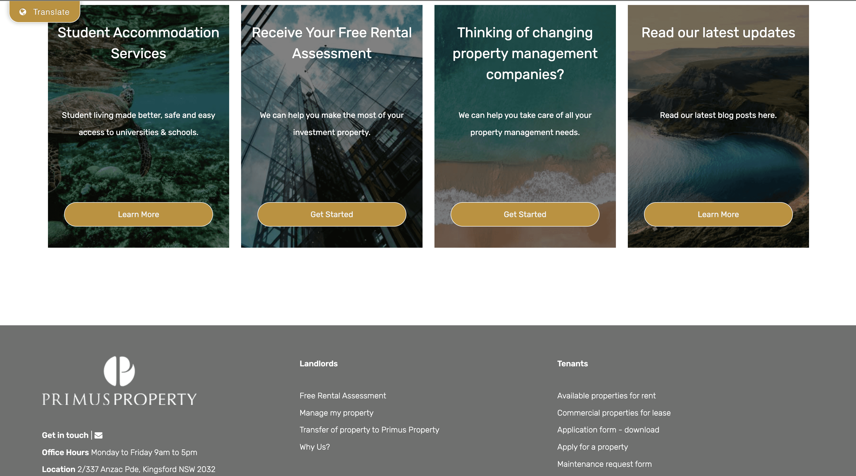 Primus Property offered property management, development services (Primus DMS), and diverse rental listings across student housing, family homes, and commercial properties. But their website only showcased student accommodation, making potential clients think that's all they did.